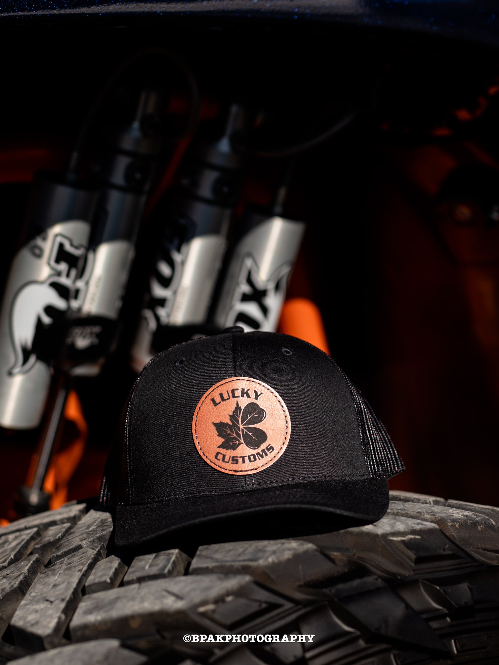 Fully adjustable snap back hats with genuine leather patches, one size fits all. Guaranteed to get lucky if you're rocking one of these bad boys.